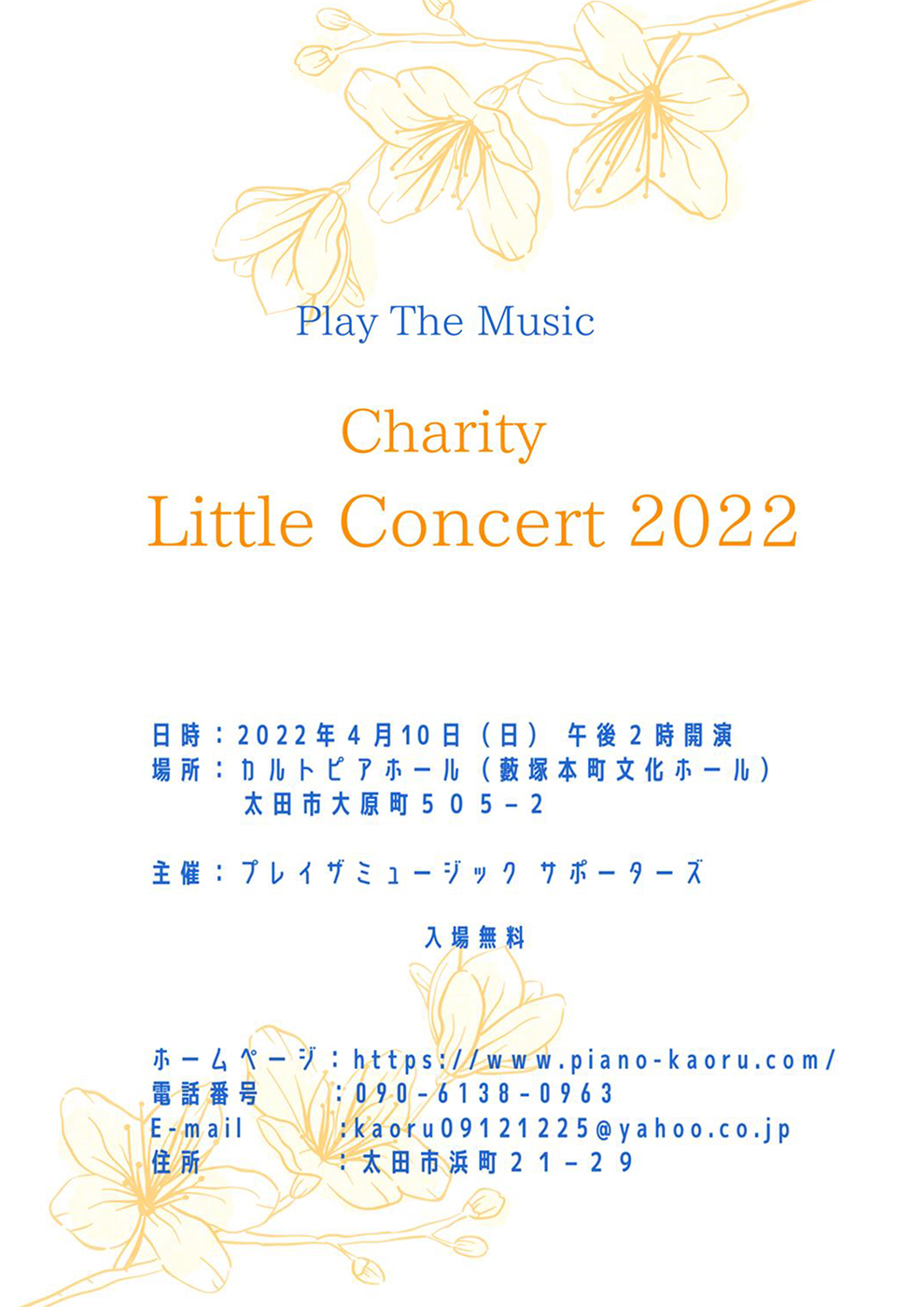 | 主催: | プレイ・ザ・ミュージック サポーターズ 後援 太田市・太田市教育委員会・上毛新聞 |