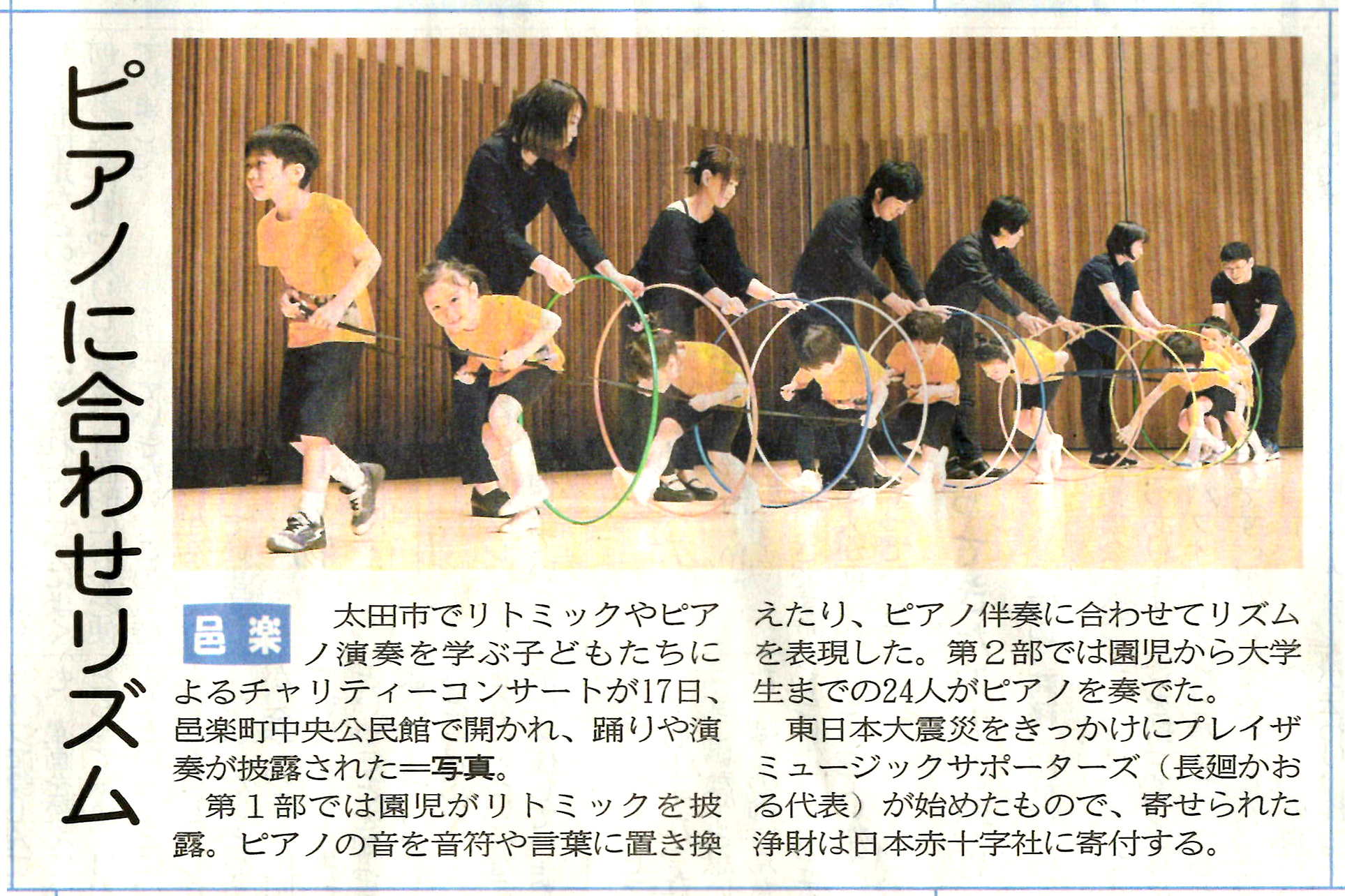 2019年3月17日に邑楽町中央公民館にて開催された、「チャリティーリトルコンサート2019」が上毛新聞にカラー写真付で大きく掲載されました!