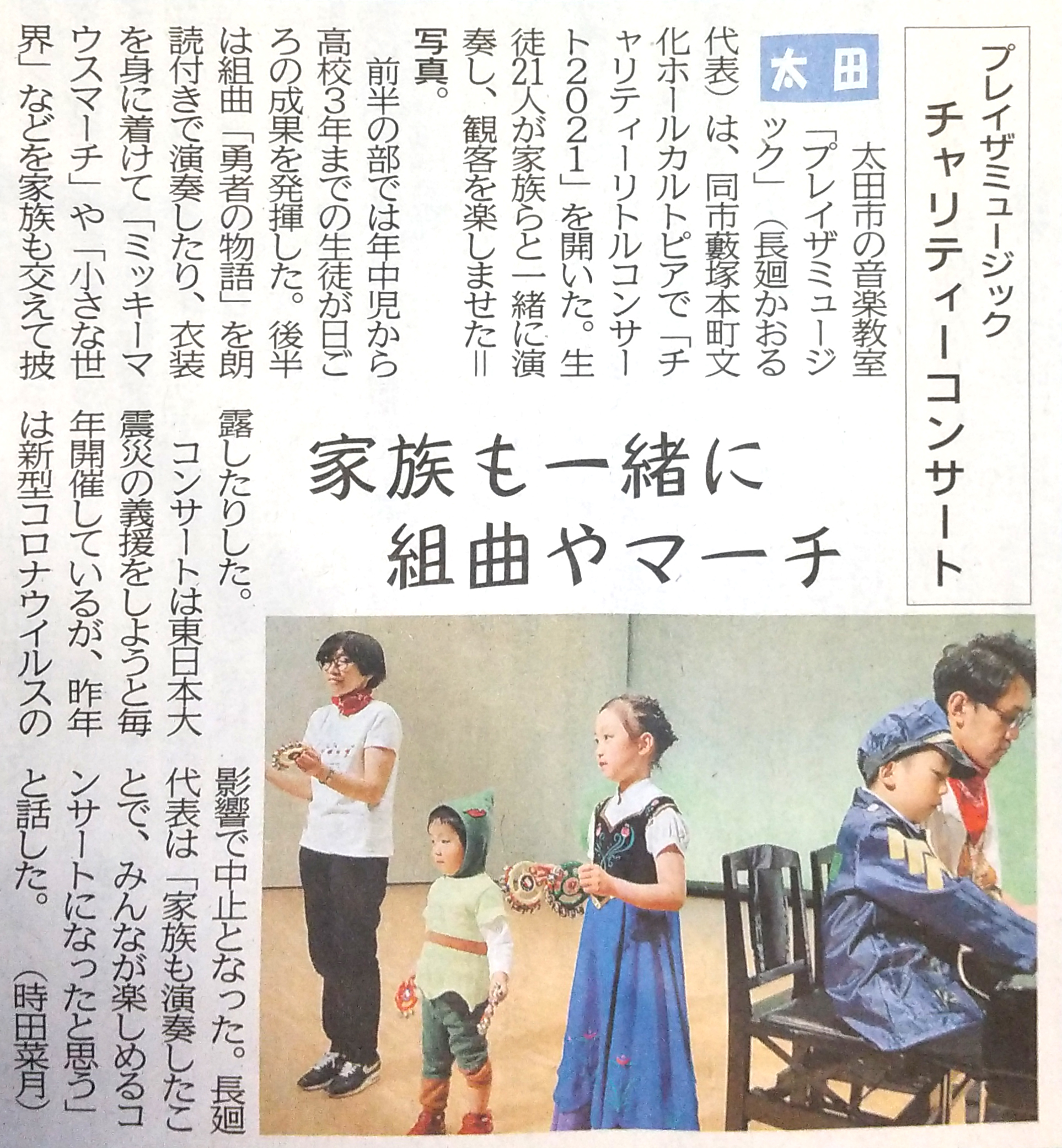 2021年4月11日に開催された、「チャリティーリトルコンサート2021」が上毛新聞にカラー写真付で大きく掲載されました!